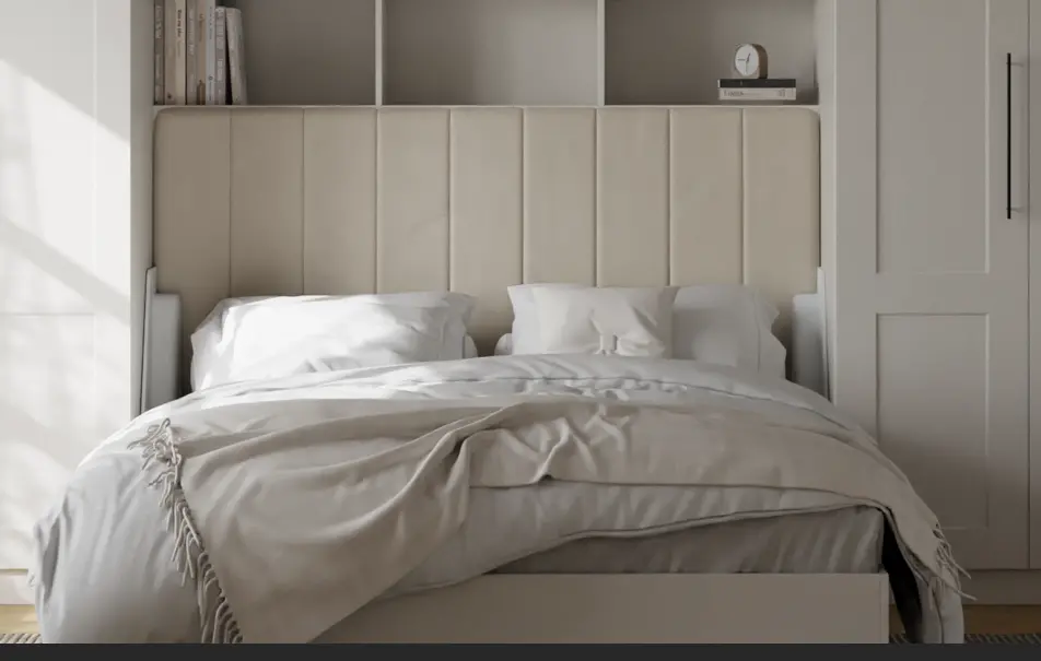 Сделаем шкаф‑кровать под вашу комнату: размеры, фасады и цвет, наполнение (полки/шкафы/антресоли). Учтём ниши, плинтус, розетки и выступы — чтобы всё встало точно и выглядело как встроенное.